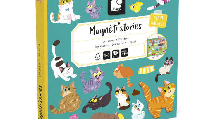 Vous entendez ces ronrons ? Ces adorables chats n'attendent que vous ! Avec ce décor magnétique où les chats jouent, grimpent et se reposent, les enfants découvrent le quotidien de ces petites boules de poils. Ce jeu magnétique se compose d’un décor aimanté ainsi que de 30 magnets à placer à sa guise. En manipulant les pièces, les enfants développent leur motricité fine, mais aussi leur imagination ! Chaque magnet, une fois plongé dans le décor, invite l’enfant à se créer ses propres histoires. Le petit chat noir et blanc ne semble plus vouloir lâcher sa pelotte de laine ! Pendant ce temps, celui avec son noeud papillon attend sagement l'heure du repas pour manger ses croquettes ! Et les deux chats gris tigrés ? On dirait bien qu'il s'agit d'une maman chat qui s'amuse avec son petit ! Des tas de scénarios rigolos viendront prendre vie dans la tête des enfants ! Pliable, le jeu peut être facilement transporté pour accompagner les enfants pendant les longs trajets en voiture ou lors de vacances en famille. Cette planche aimantée fait partie de la grande collection des Magnéti'stories, de véritables invitations à l’imagination et la rêverie. Adaptée aux enfants dès 3 ans, elle est composée de carton certifié FSC™.
