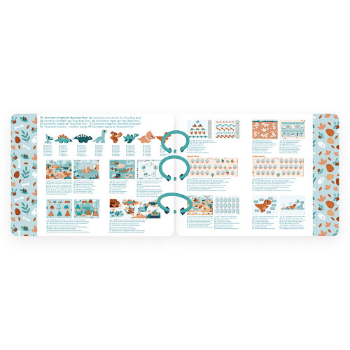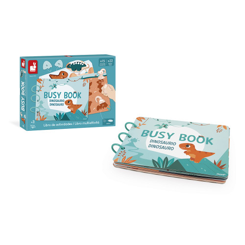 Bienvenue chez les dinos ! Ce busy-book composé de 22 pages d'activités fait découvrir aux tout-petits dès 3 ans l'univers fascinant des dinosaures. Ils apprennent à reconnaître les différentes espèces, à comprendre où elles vivaient, quelle taille elles faisaient... Il y a plein de choses à observer et à manipuler ! Les enfants retrouvent leurs dinosaures préférés : le T-Rex, le Tricératops, le Diplodocus… et même le Ptérodactyle ! Chaque page invite à manipuler, observer et nommer pour apprendre en s’amusant. Au total, 149 pièces sont à placer dans le livre ! Les illustrations douces et colorées ont été pensées pour éveiller la curiosité, enrichir le vocabulaire et développer la motricité fine. Et ce n’est pas tout : les plus grands pourront aussi s’initier aux chiffres et à l’alphabet, en majuscules et minuscules. Un vrai coup de pouce pour développer le langage et les premières notions scolaires. Pratique et évolutif, ce livre d'activités est relié par 3 anneaux en plastique détachables, permettant aux parents de sélectionner les pages les plus adaptées à l’âge et au rythme de l’enfant. Une belle façon de faire grandir le livre avec lui ! Ce jeu d’éveil est parfait pour des moments de jeu autonomes. Grâce à son format livre, il s'emporte facilement partout ! Dimensions : 27 x 21 cm. Ce busy-book est composé de carton FSC™. Place à la découverte !