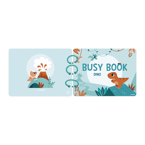 Bienvenue chez les dinos ! Ce busy-book composé de 22 pages d'activités fait découvrir aux tout-petits dès 3 ans l'univers fascinant des dinosaures. Ils apprennent à reconnaître les différentes espèces, à comprendre où elles vivaient, quelle taille elles faisaient... Il y a plein de choses à observer et à manipuler ! Les enfants retrouvent leurs dinosaures préférés : le T-Rex, le Tricératops, le Diplodocus… et même le Ptérodactyle ! Chaque page invite à manipuler, observer et nommer pour apprendre en s’amusant. Au total, 149 pièces sont à placer dans le livre ! Les illustrations douces et colorées ont été pensées pour éveiller la curiosité, enrichir le vocabulaire et développer la motricité fine. Et ce n’est pas tout : les plus grands pourront aussi s’initier aux chiffres et à l’alphabet, en majuscules et minuscules. Un vrai coup de pouce pour développer le langage et les premières notions scolaires. Pratique et évolutif, ce livre d'activités est relié par 3 anneaux en plastique détachables, permettant aux parents de sélectionner les pages les plus adaptées à l’âge et au rythme de l’enfant. Une belle façon de faire grandir le livre avec lui ! Ce jeu d’éveil est parfait pour des moments de jeu autonomes. Grâce à son format livre, il s'emporte facilement partout ! Dimensions : 27 x 21 cm. Ce busy-book est composé de carton FSC™. Place à la découverte !