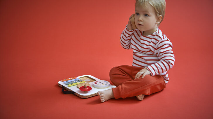 Attention les oreilles, bébé fait son show ! Voici une table musicale en bois aux couleurs attrayantes spécialement conçue pour les plus petits ! Parfaitement adaptée aux petites mains, elle regroupe divers instruments de musique avec lesquels les tout-petits à partir de 12 mois vont pouvoir s'amuser ! Elle est composée d'1 gratte-gratte, d'1 tambour, d'1 cymbale rouge, d'1 xylophone à 4 notes , d'1 cassette-hochet remplie de billes et de 2 baguettes. Grâce à un rangement malin sur le dessus de la table, ces dernières s'emportent facilement partout ! Cette table invite les tout-petits à explorer, taper, frotter, écouter… et surtout à s’émerveiller ! Elle stimule l'éveil musical, la motricité fine, la coordination et l’imagination. Un vrai terrain de jeu musical pour les premières improvisations ! Trop pratique, avec sa poignée et son petit format, elle peut suivre bébé partout ! Cette table musicale spéciale bébé fait partie de la gamme Confetti, une gamme complète de jouets d'imitation musicale avec des motifs Pop N' Rock ! Plein de couleurs et de joie, Les jouets musicaux Confetti permettent aux plus jeunes musiciens de s'initier aux joies de l'improvisation musicale. Ce jouet d'imitation musical est composé de bois FSC™. Un, deux, trois... musique !