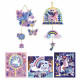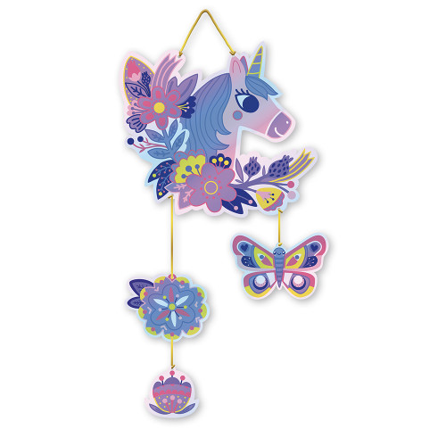 Avec ce kit créatif votre enfant réalise de belles décorations sur le thème des licornes pour ensuite les accrocher dans sa chambre. Grâce à la technique du Scratch Art, l'activité est accessible et amusante à réaliser pour les enfants dès 6 ans. Pour cela, rien de plus simple : il suffit de se munir du stylet en bois et de gratter les illustrations pré-tracées pour voir les licornes et les arcs-en-ciel se parer de couleurs éclatantes ! Le kit comprend 3 tableaux imprimés en couleurs, mais aussi deux attrape-soleil prédécoupés. Ces suspensions, conçues sur un support PET transparent, dévoilent des reflets irisés et holographiques au fur et à mesure que l'enfant gratte l'encre. Petit à petit, l’enfant découvre l'univers de ces créatures magiques : friandises, fleurs ou encore animaux de la forêt ! Une fois révélées, ces créations se suspendent facilement grâce au fil inclus, pour créer des objets décoratifs uniques. Waouh, ça brille ! Elles captent chaque rayon de soleil pour illuminer la chambre de votre enfant ! Une activité qui allie plaisir créatif, patience et émerveillement, pour des créations qui font briller les yeux des petits artistes ! Issu de la collection "Les Ateliers du Calme", ce coffret contient : 5 tableaux à gratter de 21 x 25 cm (2 pour créer deux suspensions et 3 imprimés en 4 couleurs avec encre à gratter), du fil, 1 outil en bois et 1 livret explicatif.