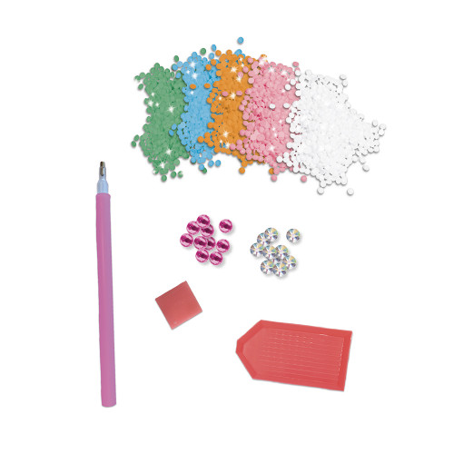 La nuit enveloppe la jungle et les animaux sauvages s’éveillent ! Donnez vie à ce décor nocturne en le parant de strass colorés pour en faire un univers scintillant et mystérieux. Le kit comprend aussi une planche de stickers à personnaliser avec cette même technique créative. Cette pochette, qui fait appel au diamond painting, est idéale pour les enfants à partir de 5 ans. Cette activité dure environ 1h40 et stimule la créativité et la motricité fine, tout en développant la patience. Un livret, présent dans le set, guide étape par étape la réalisation des modèles. Ce coffret créatif permet ainsi de décorer 1 tableau et des stickers sur le thème de la jungle à l’aide de strass autocollants de tailles et de couleurs variées. L’enfant commence par verser les strass dans le plateau pour les trier. Il prépare ensuite le stylet en appuyant sa pointe dans le carré de gomme : cela dépose une petite quantité de matière qui rend la pointe légèrement collante. Grâce à cela, il peut attraper facilement chaque strass et le coller sur le tableau. Une fois ce dernier terminé, il utilise la même technique pour décorer les stickers, qui sont déjà équipés de points de colle fugitive. Maintenant, il ne reste plus qu'à afficher fièrement les créations ! Et lorsque la nuit tombe, le tableau révèle sa magie : parmi les strass se trouve une couleur phosphorescente qui s’illumine dans l’obscurité pour un effet spectaculaire. Issu de la collection "Les Ateliers du Calme", ce kit contient : 1 tableau (21 x 25 cm), 1 planche de 20 stickers avec points de colle fugitive, 1 200 mini-strass de 5 couleurs différentes dont 1 phosphorescente, 20 strass (de 8 mm et de 2 couleurs), 1 stylet, 1 carré de cire, 1 plateau et 1 livret explicatif. Prêts à faire briller le guépard ?