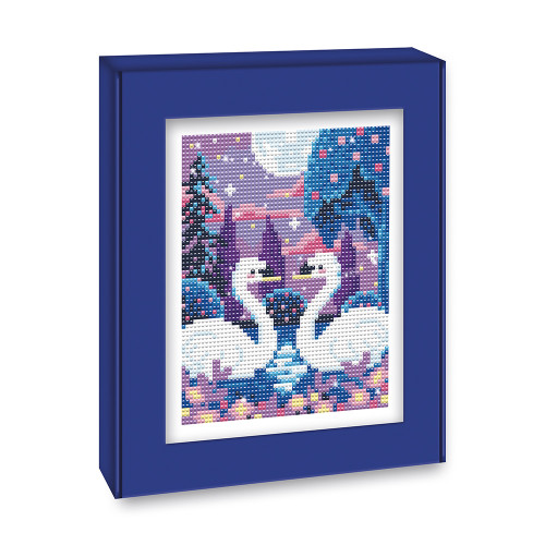 Qu'ils sont beaux ces deux cygnes au clair de lune ! Délicatesse et précision sont au rendez-vous avec ce kit créatif de peinture diamant, idéal pour les enfants dès 8 ans ! Avec cette technique, inutile d’utiliser aquarelle et eau : de petits strass scintillants permettent de composer un tableau aux détails très raffinés. Cette activité dure environ 3h et stimule la créativité et la motricité fine, tout en développant la patience. Un livret, présent dans le kit créatif, guide étape par étape la réalisation du modèle. Ce coffret permet ainsi de décorer 1 tableau à l’aide de mini-strass de couleurs variées. L’enfant commence par verser les mini-strass dans le plateau rainuré pour les aligner et faciliter leur manipulation. Il prépare ensuite le stylet en appuyant sa pointe dans le carré de gomme : cela dépose une petite quantité de matière qui rend la pointe légèrement collante. Trop pratique, le stylet est doté de plusieurs embouts de différentes tailles, lui permettant d'attraper plusieurs strass en même temps ! Votre enfant peut ainsi coller chaque diamant sur le tableau. Peu à peu, le couple de cygnes et le magnifique décor qui les entoure prennent vie, pour émerveiller toute la famille ! Ce tableau est accompagné d'un cadre à construire à partir de la boite pour magnifier la création. Même dans le noir, vous pourrez admirer les cygnes grâce aux strass phosphorescents : un joli spectacle pour les yeux avant l'heure du coucher ! Issu de la collection "Les Ateliers du Calme", ce kit contient : 1 tableau autocollant (20,7 x 24,4 cm), 3900 strass (14 couleurs dont 3 couleurs phosphorescentes), 1 stylet, 1 carré de cire, 1 plateau rainuré et 1 livret explicatif.