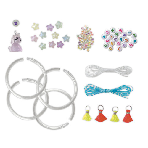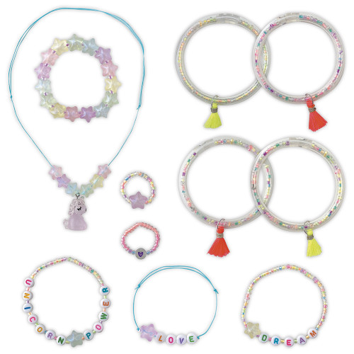 Des bijoux qui brillent pour illuminer la nuit ! Ce coffret créatif permet de réaliser 11 bijoux phosphorescents : 8 bracelets, 2 bagues et 1 collier. Sur le thème féerique de Dreamland, les enfants vont adorer assembler les perles et formes magiques pour des créations qui scintillent dans l’obscurité. Le livret inclus propose des modèles simples à suivre, mais chacun peut laisser libre cours à son imagination pour inventer des bijoux uniques. Les perles phosphorescentes apportent une touche spectaculaire : étoiles, cœurs, petites licornes et lettres se combinent pour créer des accessoires pleins de fantaisie. Le coffret contient : 1 breloque licorne phosphorescente, 25 perles étoiles, 1 perle cœur, environ 550 perles de rocaille, 21 perles lettres, du fil de jade, du fil élastique, 4 bracelets avec tubes en plastique et 4 pompons fluo. Une activité ludique d'environ 1h50 qui développe la créativité et la motricité fine, idéale dès 6 ans. Quand la lumière s’éteint, la magie opère… et les bijoux prennent vie ! Plongez dans l'univers de la collection "Dreamland", des kits de loisirs créatifs et de papeterie pour enfant sur le thème des licornes, dans un style coloré original. Pour des après-midis créatifs et fantastiques !