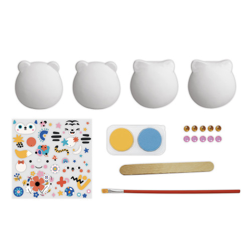 Ces animaux en plâtre vont vous faire craquer ! Ce kit créatif propose aux enfants dès 6 ans de décorer 4 figurines tout en rondeur grâce à la peinture, aux décalcomanies et à des strass scintillants. Une activité ludique qui plaira aux petits artistes en quête de couleurs et de détails brillants ! Les figurines sont déjà prêtes et protégés : il suffit de les peindre avec les galets de couleur, puis de transférer les motifs grâce à la technique de décalcomanie pour un rendu précis et sans bavure. Pour cela, votre enfant doit positionner le motif sur le plâtre, gratter avec l’outil en bois pour le transférer, puis retirer la pellicule. Et on termine par quelques strass autocollants pour apporter une touche glamour ! Résultat : des animaux décorés avec soin, parfaits pour embellir une chambre ou offrir en cadeau ! Ce kit est une belle occasion de développer la patience, la motricité fine et le sens artistique, tout en s’amusant pendant environ 1 heure. Il contient : 4 animaux en plâtre, 1 planche de décalcomanies, 1 outil en bois, 1 planche de 20 strass autocollants, 2 galets de peinture, 1 pinceau et 1 livret avec modèles et instructions. Les enfants seront fiers d’exposer leurs créations ou de les offrir à leurs proches !
