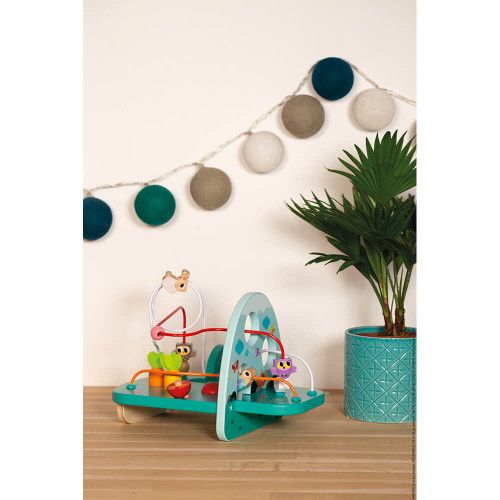 En route pour des découvertes au cœur de la jungle tropicale ! Avec ce chariot multi-activités en bois, les enfants dès 12 mois vont s'amuser pendant des heures ! Idéal pour accompagner bébé dans son apprentissage de la marche, ce chariot en bois coloré deviendra le compagnon idéal de ses premières aventures. Ce chariot est silencieux grâce au revêtement en caoutchouc présent sur les roues. 6 activités sont accessibles pour toujours plus de découvertes et de jeux : des bouliers, une boîte à formes, un adorable singe à glisser, un labyrinthe, des perles à faire coulisser et un xylophone ! Pour stimuler bébé et l'accompagner dans son développement, dès 1 an. Pratique, les deux baguettes en bois du xylophone se glissent sur le dessus du chariot pour ne pas les perdre et les emmener partout ! Ce chariot de marche au style vitaminé va faire craquer toute la famille ! Chariot en bois issu de forêts gérées durablement, certifiées FSC®. Peinture à l'eau.