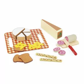 Le dimanche, c’est pique-nique en famille ! C’est parti pour une journée ensoleillée au bord du lac avec cette dinette en valisette, idéale pour les enfants à partir de 3 ans. Elle contient un service complet pour 4 personnes, et se transporte facilement dans sa jolie mallette. Pour un repas sur le pouce ou pour compléter une cuisine, cette dinette permet aux enfants de développer leur imagination en imitant les grands avec leur propre service ! Ainsi, vous trouverez dans ce set d’imitation : 4 assiettes en bois au décor fleuri, 4 serviettes en tissu, 4 sets de couverts (cuillères, fourchettes et couteaux), et 4 verres en plastique au look rétro. Une fois le pique-nique terminé, on range tous les accessoires dans la jolie mallette décorée. Avec sa poignée en métal et son loquet de fermeture, elle fait vraiment envie ! Pendant le pique-nique avec mamie, les petits s’amusent à servir les portions et les boissons, mais aussi à dresser les assiettes et à débarrasser : que de gestes utiles au quotidien, pour gagner en autonomie au moment des repas. Cette dinette en valisette est composée d’accessoires en bois issu de forêts gérées durablement, certifié FSC™. Elle fait partie de notre collection Mamie Soleil : un ensemble de jouets d’imitation inspirés de la cuisine de grand-mère, imprégnés d’émotions et de souvenirs d’enfance.