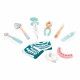 Chi ha bisogno di fare una piccola visita dal dentista? Con questo simpatico kit, un simpatico dentista con strumenti verosimili arriverà a domicilio per prendersi cura dei denti di amici o genitori! I bambini dai 3 anni in su si divertiranno a vestire i panni del dentista ed esercitarsi con i numerosi accessori in legno inclusi insieme alla valigetta: una pinza, una siringa per anestesia, una dentiera con 8 denti rimovibili, uno specchio dentale per trovare anche la carie più minuscola, una fresa, un tubetto di dentifricio e uno spazzolino da denti da regalare al paziente! 2 carte con radiografie dentali consentiranno ai bambini di fare le loro diagnosi. Tutti gli elementi dai colori pastello (vernice ad acqua) si ripongono nella pratica valigetta, decorata con un simpatico dente sorridente; ideale per sdrammatizzare le visite dal dentista! Questo prodotto è realizzato con materiali certificati FSC® e materiali controllati.