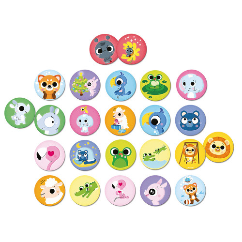 Scopri l'universo delle emozioni in compagnia di simpatici animali! Con questo colorato gioco di memoria, i bambini dai 2 anni in su scopriranno le emozioni in modo divertente. Su ciascun gettone è raffigurato un animale che esprime una diversa emozione. Questo gioco educativo è un ottimo strumento per sviluppare lo spirito di osservazione dei bambini e stimolare l'apprendimento del linguaggio. Include 24 gettoni, ognuno dei quali rappresenta un'emozione differente. Inoltre, i grandi pezzi sono perfettamente adatti alle piccole mani, rendendo il gioco facile e divertente. L'obiettivo del gioco è abbinare un'emozione a una scena di vita quotidiana. Grazie a questa attività, i bambini impareranno a identificare ed esprimere le proprie emozioni divertendosi ed esercitando la memoria. È un gioco di società educativo ideale per stimolare l'empatia. Questo gioco di memoria illustrato con diversi animali è fabbricato in Francia con inchiostri vegetali e cartone FSC™.