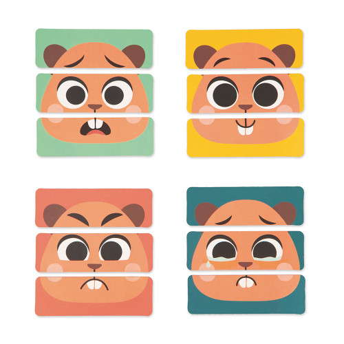 - Infine, il bambino potrà rilassarsi con un puzzle in legno sul tema delle emozioni: in compagnia del suo amico castoro, amplierà il vocabolario e imparerà a identificare meglio le emozioni. Sono rappresentate 4 emozioni (gioia, tristezza, paura e rabbia), ognuna contraddistinta da uno sfondo colorato per facilitare l'assemblaggio.