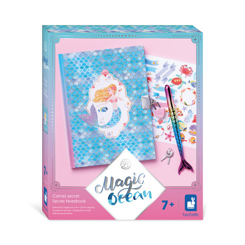 I segreti delle sirene sono ben custoditi con questo kit creativo per bambini dai 7 anni in su! Con il loro quaderno segreto di 96 pagine potranno disegnare il sentiero nascosto che conduce al regno delle perle o annotare tutto ciò che gli viene in mente. Non è solo un diario, è un'attività creativa ideale per esprimersi senza limiti grazie al foglio trasferibile e alla penna sirena inclusa! E affinché tutti i segreti dei bambini siano impenetrabili, un lucchetto e il suo set di 2 chiavi completano il quaderno. Per aggiungere un tocco magico a questa scatola creativa, la penna a forma di coda di sirena è con inchiostro viola! Attraverso le pagine, misteriose creature marine e sirene faranno tesoro di tutti i piccoli segreti dei bambini. Scrivere su un piccolo taccuino è un ottimo modo per esprimere la tua creatività, la tua personalità e sviluppare la tua immaginazione! I bambini potranno poi descrivere la loro giornata trascorsa giocando alle sirene, proprio come la giornata a scuola, a seconda del loro umore attuale. I colori cangianti di questo quaderno segreto della sirena invitano alla magia e richiamano il riflesso delle onde! Immergiti nel mondo della collezione “ Magic Ocean ”, kit creativi per il tempo libero per bambini sul tema degli abissi marini, per pomeriggi creativi cullati dal rumore delle onde!