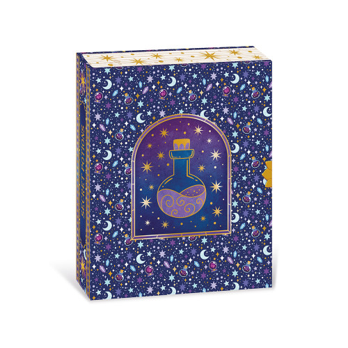 Quale pozione preparerà oggi il tuo piccolo mago? Grazie a questo kit per creare pozioni magiche, filtri e altre bevande non avranno più segreti per i bambini dai 7 anni in su. Il principio di questo kit creativo è semplice: segui le istruzioni del tuo grimorio delle ricette, crei le tue 10 miscele nelle graziose fiale, chiudi ed etichette con cura le tue pozioni, quindi presenti la tua collezione nei piccoli scomparti previsti a questo scopo. effetto all'interno della scatola. Infine, non resta che osservare le sue misteriose e colorate preparazioni o utilizzarle per giocare a fare i maghi! Un pizzico di stelle, un accenno di paillettes... Non resta che recitare la formula magica, e il gioco è fatto! Una delle particolarità di questo hobby creativo è il piccolo grimorio incluso che potrà guidare i bambini nella preparazione delle loro pozioni. Questa attività permette di sviluppare creatività e attenzione ai dettagli, ma anche di imparare a seguire una ricetta... Un po' come cucinare, ma più divertente e, soprattutto, magica! L'altro vantaggio di questa scatola creativa è la sua scatola che conservi e usi per conservare le tue pozioni: è splendidamente illustrata, per un'immersione completa in un mondo fantastico! Questa scatola per la creazione di pozioni contiene: 10 fiale di plastica con tappi, 2 tubi di sabbia, 20 perline acriliche, 1 ciondolo bacchetta magica, 1 bacchetta magica, 1 filo d'oro, 1 imbuto, 2 sacchetti di mini strass, 1 sacchetto di mini bastoncini (3 modelli), 1 sacchetto di stelle, 1 sacchetto di coriandoli metallici, 1 foglio di adesivi e 1 piccolo grimorio con ricette. Ci vorranno circa 5 minuti di preparazione per pozione. Esplora i misteri della magia con la collezione “ Magic School ”, kit creativi per il tempo libero dei bambini sul tema degli apprendisti stregoni, per pomeriggi creativi e incantati!