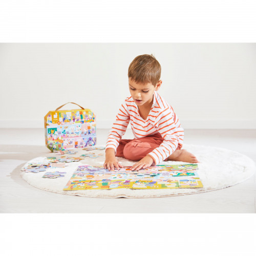 Benvenuti nella famiglia Cat! Questo puzzle in cartone da 24 pezzi aiuta i bambini a comprendere il concetto di tempo e a identificare i rituali quotidiani. Con questo puzzle, i bambini dai 3 anni in su sviluppano la concentrazione e le capacità motorie fini. Dal risveglio all'ora di andare a letto, passando per i pasti, il bagnetto e le partite di calcio con gli amici, seguono le piccole routine quotidiane della famiglia Cat. I bambini scoprono la loro giornata tipo pezzo per pezzo e si divertono a immaginare la loro vita: abbastanza da tenerli occupati per ore! Questo puzzle incoraggia i bambini più piccoli a usare le loro capacità di ragionamento deduttivo. Fornito con un poster come guida per i principianti, possono poi completare il puzzle in modo indipendente man mano che acquisiscono maggiore autonomia. Misurando 50 x 40 cm, questo puzzle è realizzato in Francia in cartone certificato FSC™ e viene fornito in una graziosa custodia per il trasporto, che lo rende facile da portare ovunque. Stampato con inchiostri a base vegetale.