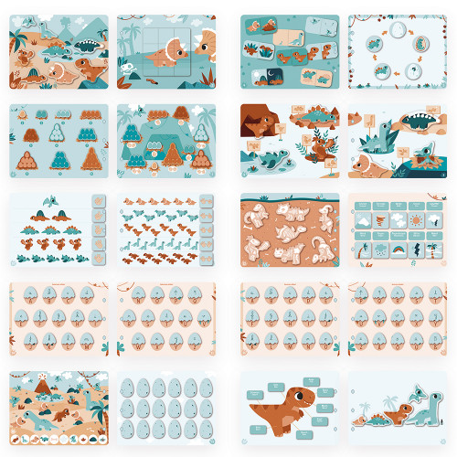 Benvenuti tra i dinosauri! Questo libro ricco di attività, con le sue 22 pagine, introduce i bambini dai 3 anni in su all'affascinante mondo dei dinosauri. Imparano a riconoscere le diverse specie, a capire dove vivevano, quanto erano grandi e molto altro ancora. Ci sono così tante cose da osservare e manipolare! I bambini troveranno i loro dinosauri preferiti: il T-Rex, il Triceratopo, il Diplodoco... e persino lo Pterodattilo! Ogni pagina li invita a manipolare, osservare e nominare i pezzi, rendendo l'apprendimento divertente. In totale ci sono 149 pezzi da inserire nel libro! Le illustrazioni delicate e colorate sono pensate per stimolare la curiosità, arricchire il vocabolario e sviluppare le capacità motorie fini. E non è tutto: i bambini più grandi possono anche essere introdotti ai numeri e all'alfabeto, sia in maiuscolo che in minuscolo. Un vero aiuto per lo sviluppo del linguaggio e delle prime competenze scolastiche. Pratico e adattabile, questo libro di attività è rilegato con tre anelli di plastica staccabili, che consentono ai genitori di selezionare le pagine più adatte all'età e al ritmo del bambino. Un modo meraviglioso per far crescere il libro con loro! Questo giocattolo per l'apprendimento precoce è perfetto per il gioco indipendente. Grazie al suo formato a libro, è facile da portare ovunque! Dimensioni: 27 x 21 cm. Questo libro è realizzato in cartone certificato FSC™. Che la scoperta abbia inizio!