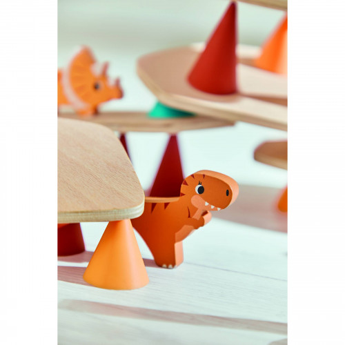 Conoscete il famoso gioco Piks? Prodotto di punta di OPPI, questo gioco di equilibrio consiste nell'impilare assi di legno su coni di silicone... senza farli cadere! È un'attività divertente che sviluppa l'attenzione e la concentrazione del bambino, nonché le sue capacità motorie fini e la sua capacità di comprendere e organizzare lo spazio. Janod ha collaborato con OPPI per creare il suo gioco Piks, ambientato in un mondo giurassico! Questo gioco di destrezza in legno insegna ai bambini dai 3 anni in su a posizionare i pezzi in modo logico e preciso per mantenere l'equilibrio. È composto da 21 coni di 3 diverse dimensioni e colori, oltre a 7 assi di legno. E quale modo migliore per mettere alla prova l'equilibrio se non con i dinosauri? I bambini possono divertirsi a posizionare 6 dinosauri sulle piattaforme: Triceratopo, Stegosauro, Pterodattilo, Tirannosauro, Brachiosauro e Anchilosauro. La loro presenza aggiunge un tocco di avventura a questo gioco di equilibrio: il bambino non si limita a posizionare i pezzi, ma mette in scena le sue creature preferite in una sfida ricca di suspense! È l'ideale per stimolare la fantasia! Allora, pronti ad accettare la sfida?