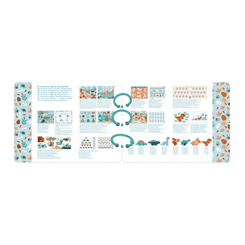 Benvenuti tra i dinosauri! Questo libro ricco di attività, con le sue 22 pagine, introduce i bambini dai 3 anni in su all'affascinante mondo dei dinosauri. Imparano a riconoscere le diverse specie, a capire dove vivevano, quanto erano grandi e molto altro ancora. Ci sono così tante cose da osservare e manipolare! I bambini troveranno i loro dinosauri preferiti: il T-Rex, il Triceratopo, il Diplodoco... e persino lo Pterodattilo! Ogni pagina li invita a manipolare, osservare e nominare i pezzi, rendendo l'apprendimento divertente. In totale ci sono 149 pezzi da inserire nel libro! Le illustrazioni delicate e colorate sono pensate per stimolare la curiosità, arricchire il vocabolario e sviluppare le capacità motorie fini. E non è tutto: i bambini più grandi possono anche essere introdotti ai numeri e all'alfabeto, sia in maiuscolo che in minuscolo. Un vero aiuto per lo sviluppo del linguaggio e delle prime competenze scolastiche. Pratico e adattabile, questo libro di attività è rilegato con tre anelli di plastica staccabili, che consentono ai genitori di selezionare le pagine più adatte all'età e al ritmo del bambino. Un modo meraviglioso per far crescere il libro con loro! Questo giocattolo per l'apprendimento precoce è perfetto per il gioco indipendente. Grazie al suo formato a libro, è facile da portare ovunque! Dimensioni: 27 x 21 cm. Questo libro è realizzato in cartone certificato FSC™. Che la scoperta abbia inizio!