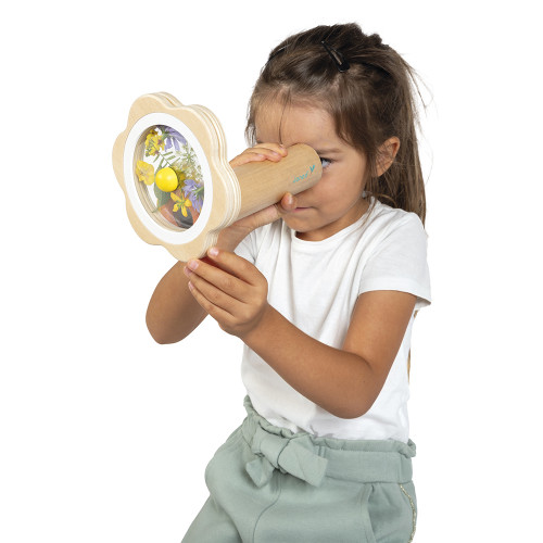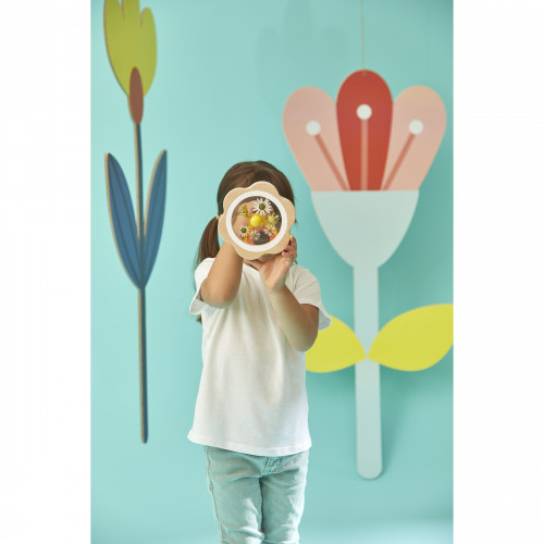 Uno spettacolo colorato da creare! Con questo caleidoscopio di fiori in legno, i bambini danno vita a magnifiche creazioni ispirate alla natura. Usarlo non potrebbe essere più semplice! I bambini vanno alla ricerca di piccoli tesori durante le passeggiate o a casa: petali, foglie o piccoli elementi colorati. Una volta raccolti i loro reperti, li infilano tra i due pannelli magnetici a forma di fiore. Poi, basta avvitare il tutto al manico di legno, girarlo... et voilà, lo spettacolo ha inizio! Superbi e affascinanti motivi appaiono davanti ai loro occhi stupiti! Ogni creazione è unica: il bambino sceglie cosa vuole assemblare, osserva il risultato e poi ricomincia con nuovi elementi. Un modo meraviglioso per sviluppare l'immaginazione, stimolare la curiosità e incoraggiare l'esplorazione dell'ambiente. Questo gioco di osservazione fa parte della gamma Happy Garden: una collezione dedicata alla scoperta della natura e del giardinaggio, con strumenti e accessori per osservare ed esplorare proprio come i grandi. Progettato per bambini dai 3 anni in su, questo giocattolo è realizzato in legno certificato FSC™.