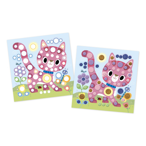 Mosaici di gommapiuma a profusione! I bambini dai 3 anni in su adoreranno personalizzare quattro immagini con questi graziosi mosaici rotondi di gommapiuma. Con questo kit creativo, le illustrazioni brilleranno di mille colori! Come gli adesivi, i mosaici di questo set creativo hanno molti vantaggi: sono disponibili in diverse dimensioni e colori per offrire un'attività ricca e varia. Alcuni di essi sono persino glitterati! Le loro dimensioni sono state pensate per le manine dei più piccoli: si staccano facilmente, rendendoli semplici e divertenti da maneggiare. Incollare i mosaici è un'attività creativa ideale per sviluppare la motricità fine, imparare a essere precisi e seguire un modello divertendosi. Le quattro immagini da decorare raffigurano adorabili animali: un gatto, un cane, una tartaruga e dei pesci. Questo set è perfetto per i bambini in età prescolare grazie alla semplicità dell'attività e alle dimensioni appropriate degli adesivi. Descrivendo le scene con questi piccoli amici, i bambini arricchiranno il loro vocabolario. Il kit contiene: 4 tele di 20 x 20 cm, 5 mosaici rotondi di gommapiuma con adesivi e un libretto con istruzioni e modelli. La decorazione di ogni tela richiede circa 10 minuti. Un'idea regalo unica per un artista in erba!