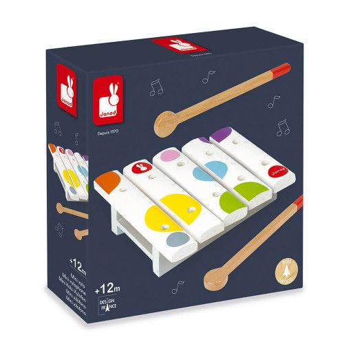 Giocattolo in legno, per bambini da 12 a 36 mesi. Xilofono in legno 5 toni con 2 bacchette. Rosso, giallo, verde, arancio !!! Confetti è una gamma completa di giocattoli musicali con motivi Pop ‘n’ Rock! Confetti risveglia tutti i sensi e permette ai musicisti più giovani di avvicinarsi alle gioie dell’improvvisazione musicale.
