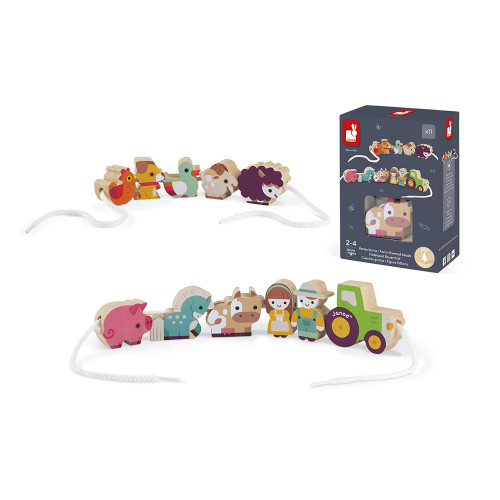 Dalla fattoria al mercato, fai un giro sul trenino! A partire dai 12 mesi, il vostro bambino adorerà il suo trenino da tirare. Composto da 3 vagoni e 19 pezzi da assemblare, questo trenino in legno è sia un gioco di costruzioni che un giocattolo da tirare che incoraggia il movimento. Impilare i pezzi o fare un giro: perché scegliere se si possono fare entrambe le cose? Nel divertente e colorato mondo della fattoria, il bambino si divertirà a scoprire piccoli animali (un coniglio bianco, un coniglio marrone e una gallinella) e divertenti verdure (patata, pomodoro, carota e ravanello). Decorati in feltro per favorire la scoperta tattile, gli animali e le verdure fanno venire l'acquolina in bocca! Alcuni personaggi sono composti da un solo pezzo, fino a 3 pezzi per la carota e 6 pezzi per la locomotiva. Le loro dimensioni sono state studiate appositamente per le piccole mani. L'abilità principale delle attività offerte da questo giocattolo per l'apprendimento precoce è la motricità! Si inizia con la motricità fine, grazie all'assemblaggio dei pezzi e dei personaggi, tutti rimovibili. Poi, man mano che crescono, possono partire all'avventura con il loro trenino di legno per sviluppare la motricità lorda. Non c'è dubbio, il mondo della fattoria ha in serbo molte sorprese per il bambino! Il trenino di legno misura 42 x 7 x 14 cm e la corda che lo muove è lunga 50 cm. Questo giocattolo per bambini è realizzato con legno certificato FSC™ proveniente da foreste gestite in modo sostenibile. Il treno per la fattoria del bambino entrerà in stazione sul binario J!