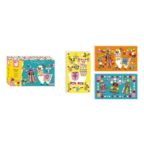 3 tavolette auto-collanti per decorare con 200 pomponi, 2 fili di cotone, 1 spatola e 1 libretto con i modelli et le istruzioni. Le attività creative...