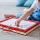 A scuola materna, i bambini scoprono un po’ alla volta le lettere in corsivo. Per aiutare il tuo bambino nell’apprendimento, scopri questa giocosa e pratica valigetta che gli permetterà di divertirsi con l'alfabeto. Ci sono 4 attività combinate in 1: Un lato magnetico con riconoscimento delle lettere per imparare l'alfabeto, dei compartimenti per mettere in ordine e memorizzare lettere e accessori, una lavagna bianca magnetica cancellabile per imparare a scrivere le sue prime parole, una lavagna nera per esercitarsi a scrivere con i gessetti. Sono inclusi diversi accessori: 105 tra lettere e accenti magnetici in cartone spesso con le consonanti in blu e le vocali in rosso per distinguerle meglio, 2 pennarelli (blu e rosso), 1 cancellino e 2 gessetti. Pratica, la valigetta è dotata di piedini antiscivolo, molto utili per aprirla nella giusta direzione. A partire dai 3 anni. Solo alfabeto latino.
